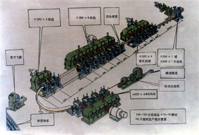 由主電機.主減速機.人字齒輪機座和一架或幾架軋機組成.(下列軋機是安裝于軋鋼車間中的主機列.本廠還可以根據(jù)用戶需要配套推鋼機.移鋼機.輥道.升降臺.冷床.剪斷機等各種輔助設(shè)備.)